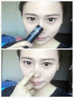 2.然后用高光棒在鼻梁位置畫一下,再用手指把畫上的高光部分涂抹暈染開,這樣會非常自然。高鼻梁立體五官就這樣輕松呈現拉~~
