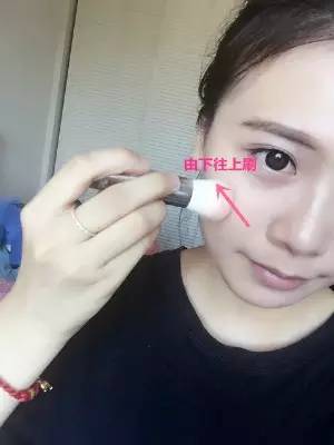 像這樣在臉部各個部位,隨意點上幾點,然后以鼻子為中心,發散涂抹均勻。鼻翼、眼下用手指按壓使底妝服帖。