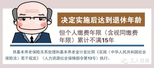 決定實施后達到退休年齡但個人繳費年限累計不滿15年的人員其基本養(yǎng)老保險關系處理和基本養(yǎng)老金計發(fā)比照《實施〈中華人民共和國社會保險法〉若干規(guī)定》(人力資源社會保障部令第13號)執(zhí)行。